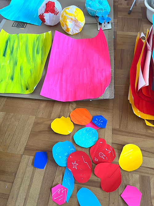 ケント紙にアクリルガッシュで塗って、チョキチョキ。